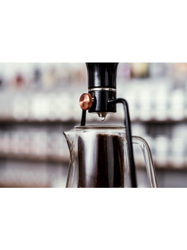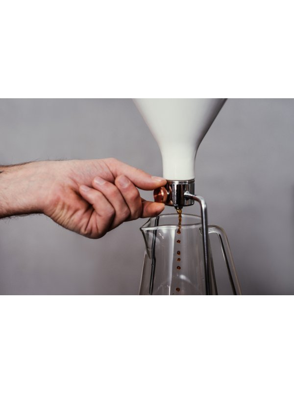 Krople wody powoli kapią na świeże ziarna kawy przez kilka godzin. Otrzymujemy gładki napój przypominający likier kawowy.