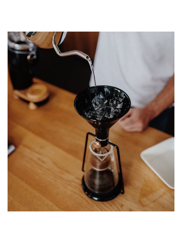 Krople wody powoli kapią na świeże ziarna kawy przez kilka godzin. Otrzymujemy gładki napój przypominający likier kawowy.