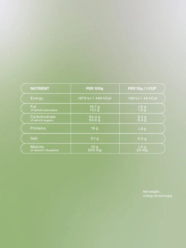 - Naturalna L-teanina w Matchy zapewnia stałą energię i lepszą koncentrację bez kofeinowych drgawek.