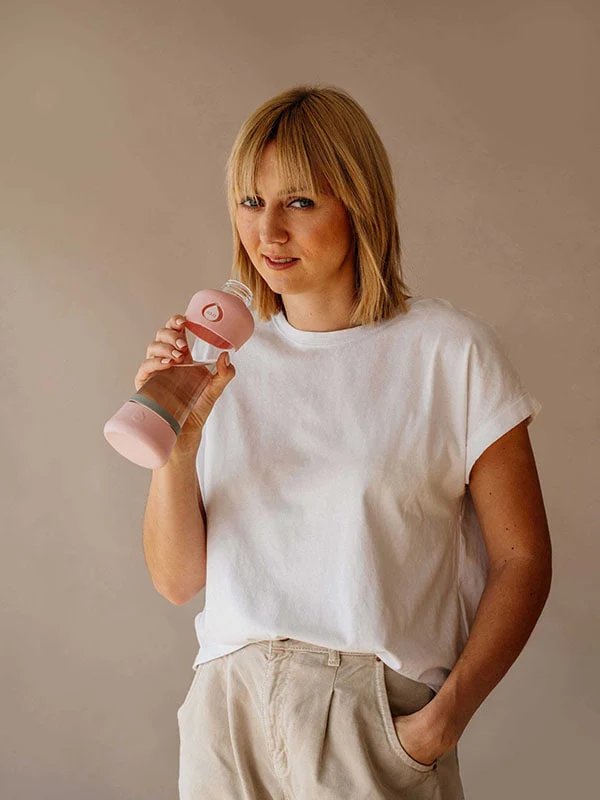 Ekologiczna szklana butelka EQUA wykonana z wytrzymałego i lekkiego szkła borokrzemowego o minimalistycznym designie. Pomoże Ci niezawodnie zadbać o swój rytm picia, a jednocześnie zmniejszyć zużycie jednorazowych tworzyw sztucznych. Dzięki praktycznemu kształtowi dobrze leży w dłoni. Do tego świetnie wygląda, więc picie z niej każdego dnia to czysta przyjemność.