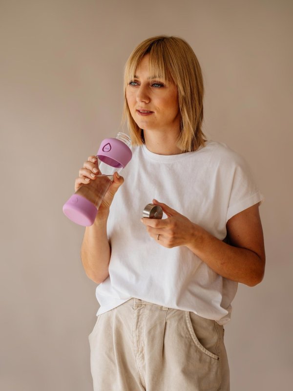 Ekologiczna szklana butelka EQUA wykonana z wytrzymałego i lekkiego szkła borokrzemowego o minimalistycznym designie. Pomoże Ci niezawodnie zadbać o swój rytm picia, a jednocześnie zmniejszyć zużycie jednorazowych tworzyw sztucznych. Dzięki praktycznemu kształtowi dobrze leży w dłoni. Do tego świetnie wygląda, więc picie z niej każdego dnia to czysta przyjemność.