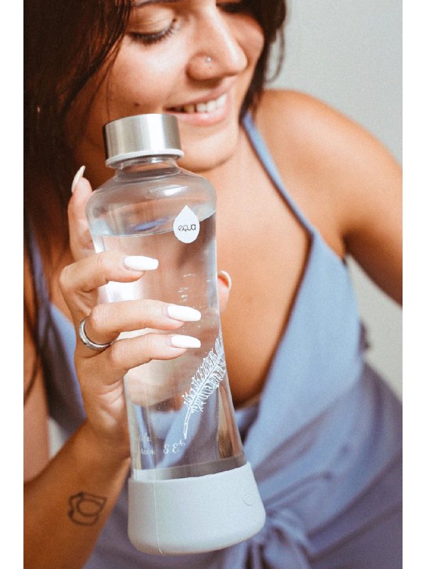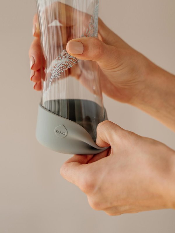 Ekologiczna szklana butelka EQUA wykonana z wytrzymałego i lekkiego szkła borokrzemowego o oryginalnym designie. Pomoże Ci niezawodnie zadbać o rytm picia, a jednocześnie zmniejszyć zużycie jednorazowych tworzyw sztucznych. Dzięki praktycznemu kształtowi dobrze leży w dłoni. Do tego świetnie wygląda, więc picie z niej każdego dnia to czysta przyjemność.