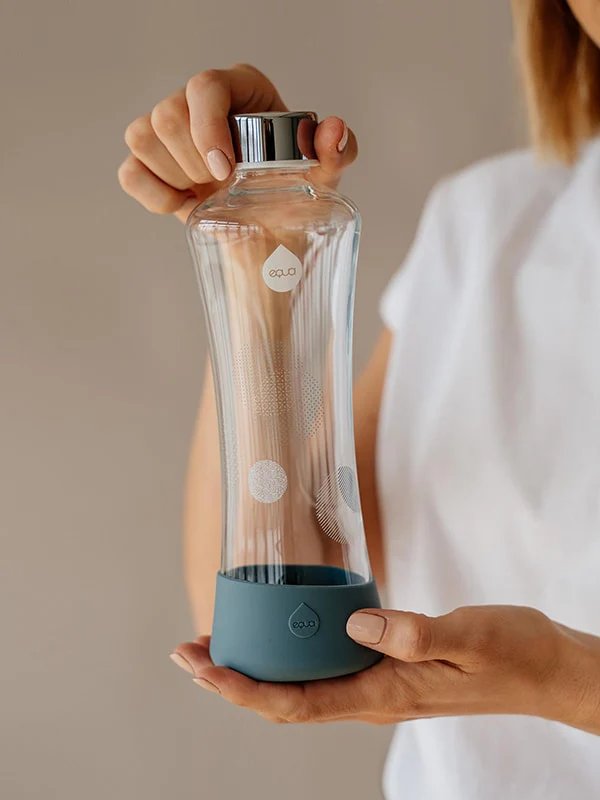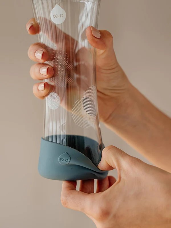 Ekologiczna szklana butelka EQUA wykonana z wytrzymałego i lekkiego szkła borokrzemowego o oryginalnym designie. Pomoże Ci niezawodnie zadbać o rytm picia, a jednocześnie zmniejszyć zużycie jednorazowych tworzyw sztucznych. Dzięki praktycznemu kształtowi dobrze leży w dłoni. Do tego świetnie wygląda, więc picie z niej każdego dnia to czysta przyjemność.