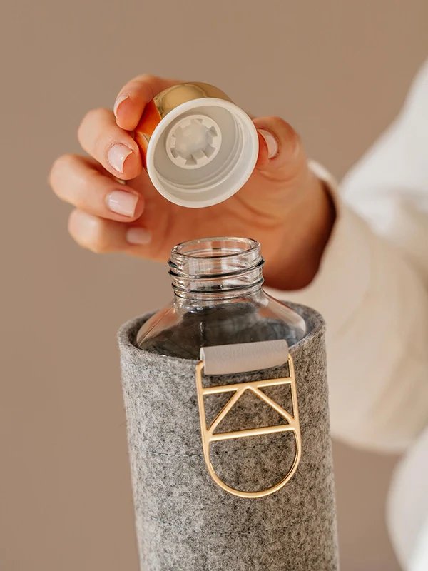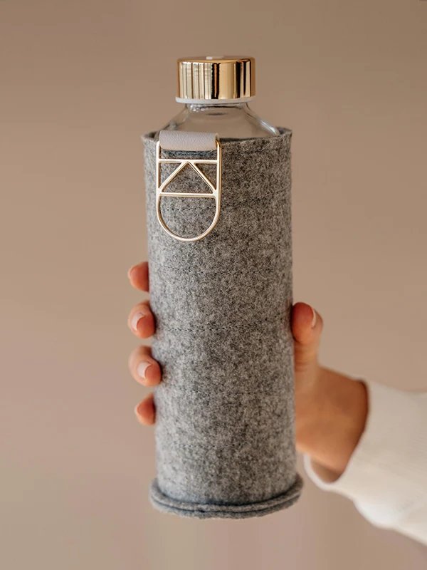 Ekologiczna szklana butelka EQUA wykonana z wytrzymałego i lekkiego szkła borokrzemowego o minimalistycznym designie, owinięta filcowym etui. Pomoże Ci niezawodnie zadbać o swój rytm picia, jednocześnie zmniejszając zużycie jednorazowych tworzyw sztucznych. Dzięki praktycznemu kształtowi dobrze leży w dłoni. Do tego świetnie wygląda, więc picie z niego każdego dnia to czysta przyjemność.
