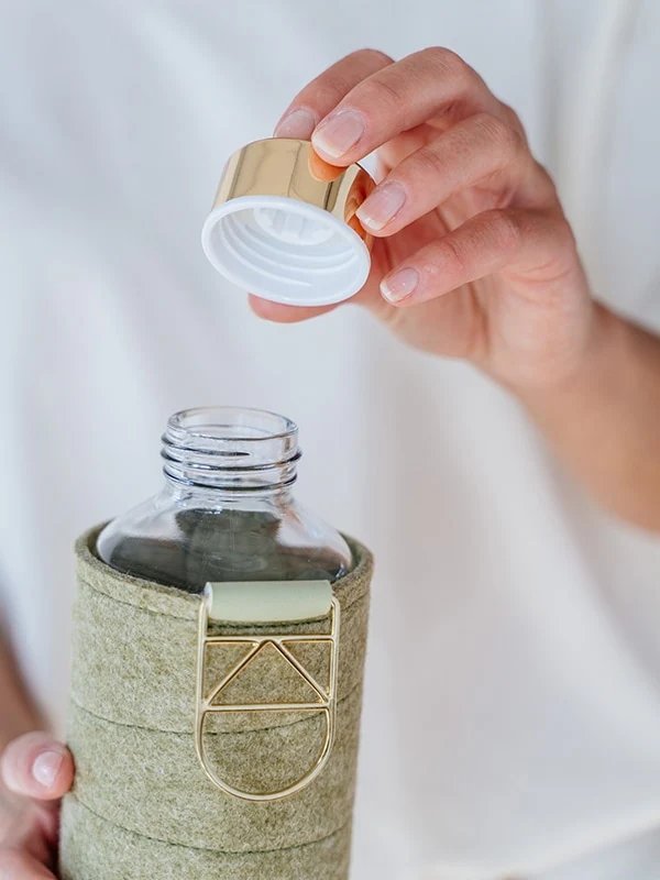 Ekologiczna szklana butelka EQUA wykonana z wytrzymałego i lekkiego szkła borokrzemowego o minimalistycznym designie, owinięta filcowym etui. Pomoże Ci niezawodnie zadbać o swój rytm picia, jednocześnie zmniejszając zużycie jednorazowych tworzyw sztucznych. Dzięki praktycznemu kształtowi dobrze leży w dłoni. Do tego świetnie wygląda, więc picie z niego każdego dnia to czysta przyjemność.