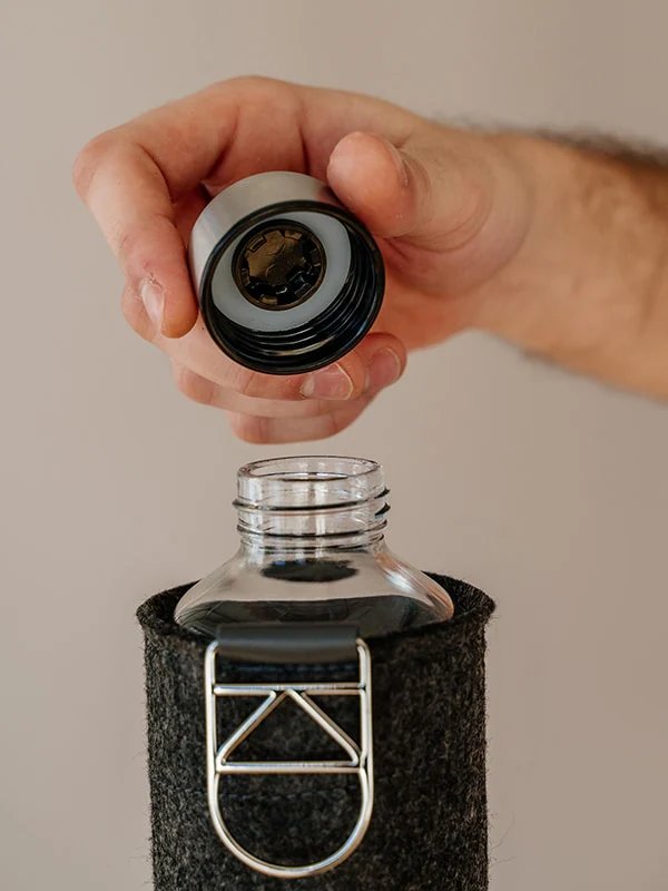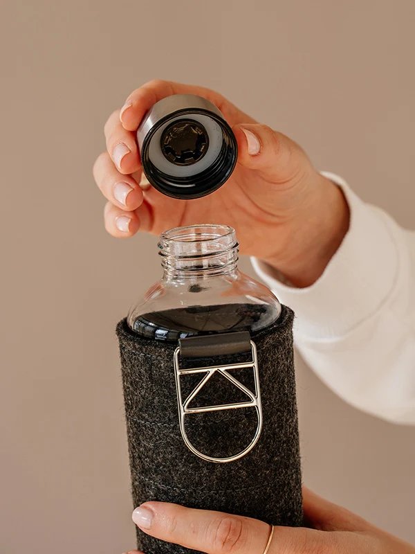 Ekologiczna szklana butelka EQUA wykonana z wytrzymałego i lekkiego szkła borokrzemowego o minimalistycznym designie, owinięta filcowym etui. Pomoże Ci niezawodnie zadbać o swój rytm picia, jednocześnie zmniejszając zużycie jednorazowych tworzyw sztucznych. Dzięki praktycznemu kształtowi dobrze leży w dłoni. Do tego świetnie wygląda, więc picie z niego każdego dnia to czysta przyjemność.