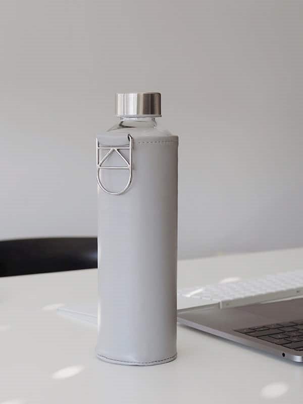 Szklana butelka z pokrowcem ze sztucznej skóry EQUA Grey Dove 750 ml