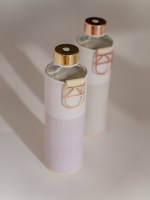 Ekologiczna szklana butelka EQUA wykonana z wytrzymałego i lekkiego szkła borokrzemowego o minimalistycznym designie, zapakowana w eleganckie opakowanie ze sztucznej skóry. Pomoże Ci niezawodnie zadbać o swój rytm picia, jednocześnie zmniejszając zużycie jednorazowych tworzyw sztucznych. Dzięki praktycznemu kształtowi dobrze leży w dłoni. Do tego świetnie wygląda, więc picie z niej każdego dnia to czysta przyjemność.