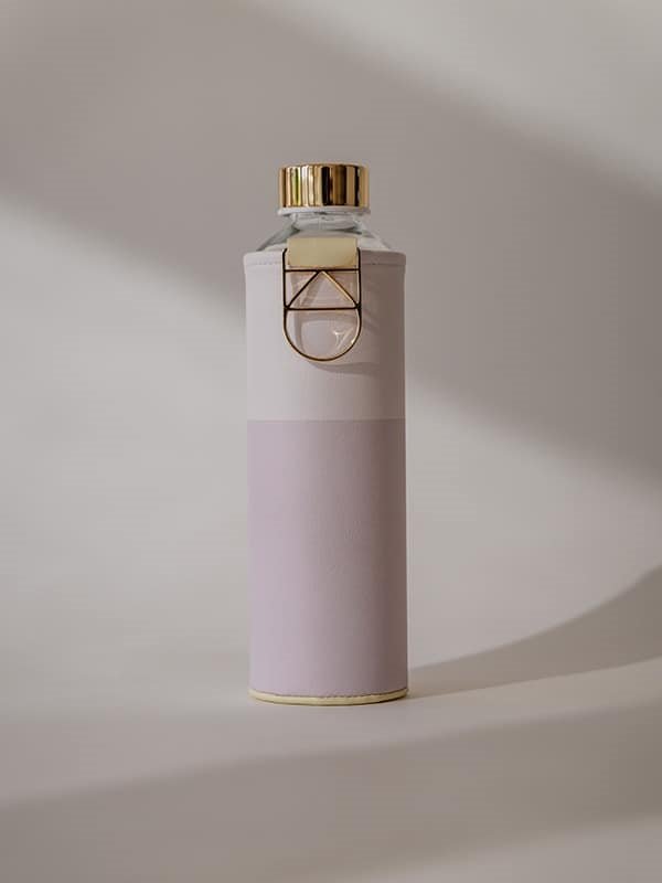 Szklana butelka z pokrowcem ze sztucznej skóry EQUA Lila 750 ml
