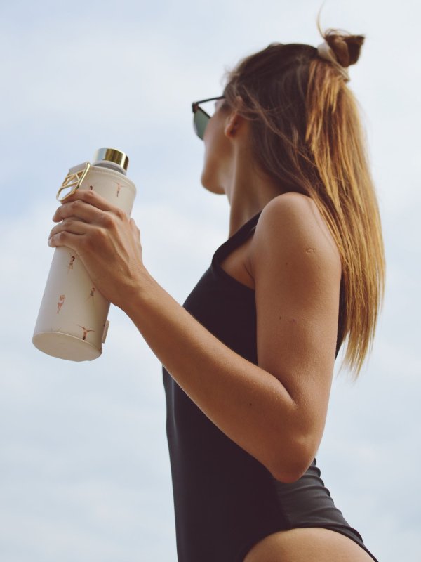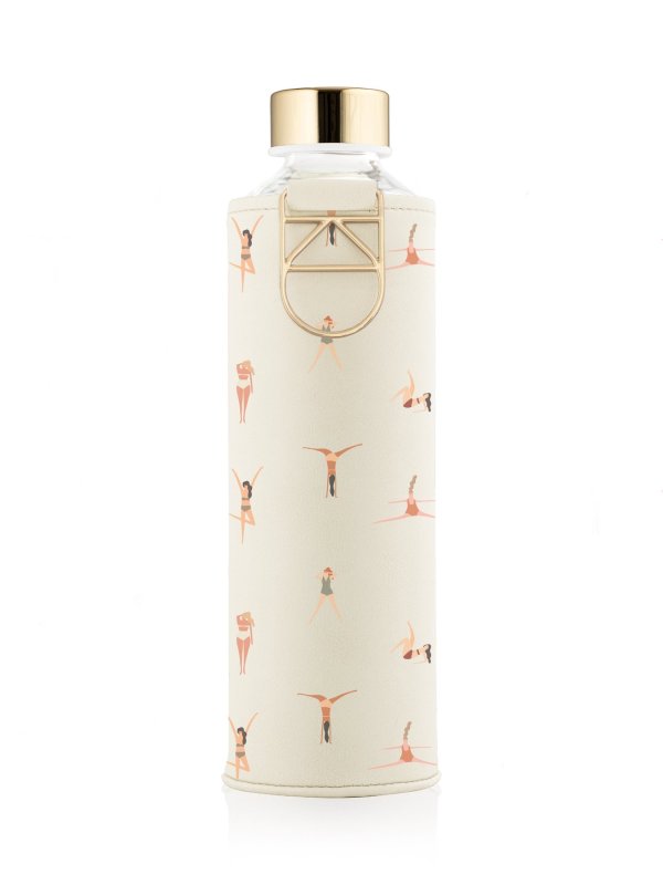 Ekologiczna szklana butelka EQUA wykonana z wytrzymałego i lekkiego szkła borokrzemowego o minimalistycznym designie, zapakowana w eleganckie opakowanie ze sztucznej skóry. Pomoże Ci niezawodnie zadbać o swój rytm picia, jednocześnie zmniejszając zużycie jednorazowych tworzyw sztucznych. Dzięki praktycznemu kształtowi dobrze leży w dłoni. Do tego świetnie wygląda, więc picie z niej każdego dnia to czysta przyjemność.