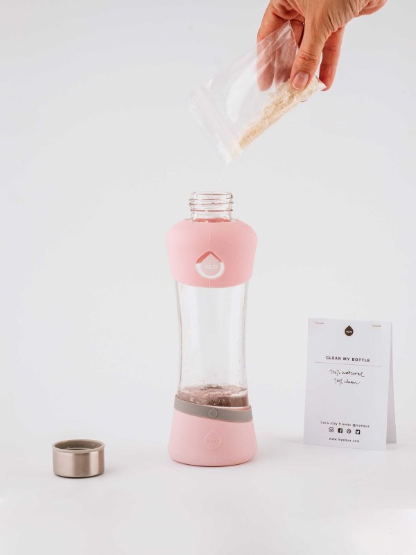 Nie musisz się martwić o prawidłowe czyszczenie butelki! Stworzyliśmy przyjazną dla planety mieszankę na bazie ryżu i sody, która zdziała cuda. Jest naprawdę łatwa w użyciu!